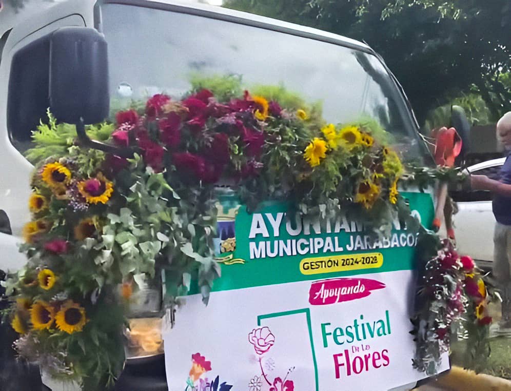 Uno de los momentos más aplaudidos del evento fue protagonizado por la Alcaldía de Jarabacoa, que presentó una carroza fuera de lo convencional: un camión de recolección de desechos sólidos completamente decorado con flores naturales y detalles artesanales. La propuesta sorprendió al público y se robó la atención por su mensaje claro y poderoso.